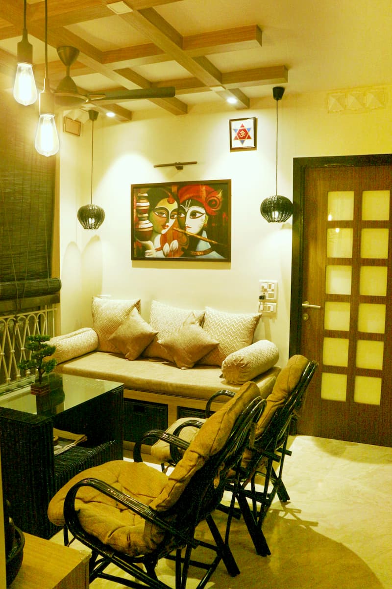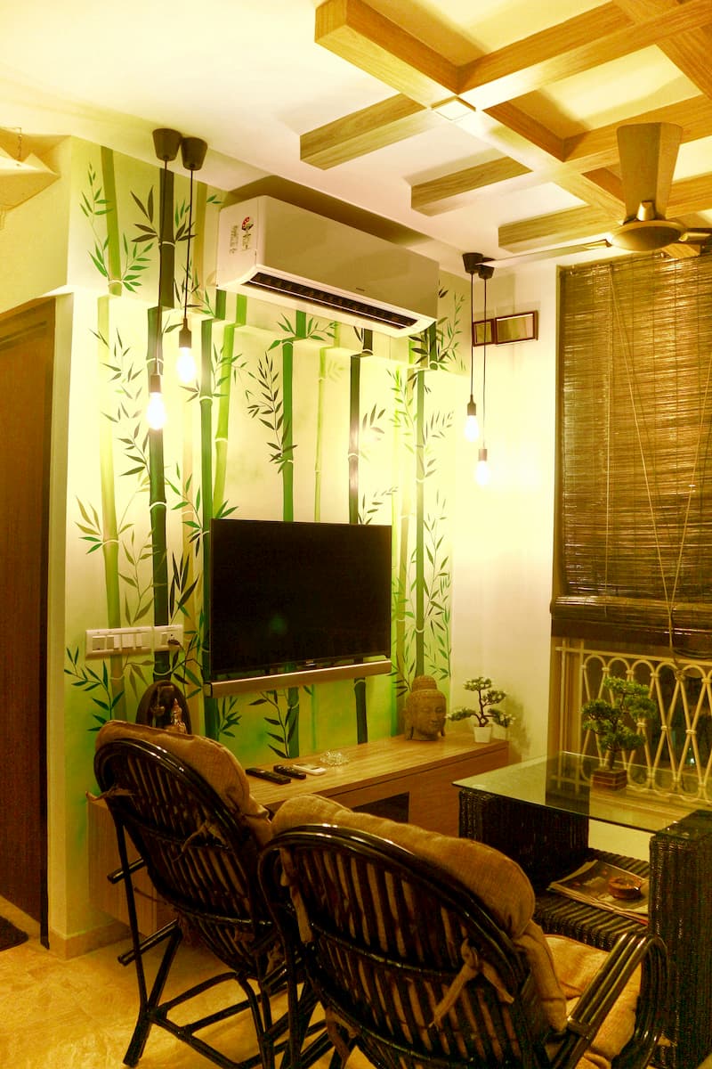 potted plants, and wicker to create a calming, Zen themed living room. To make sure that