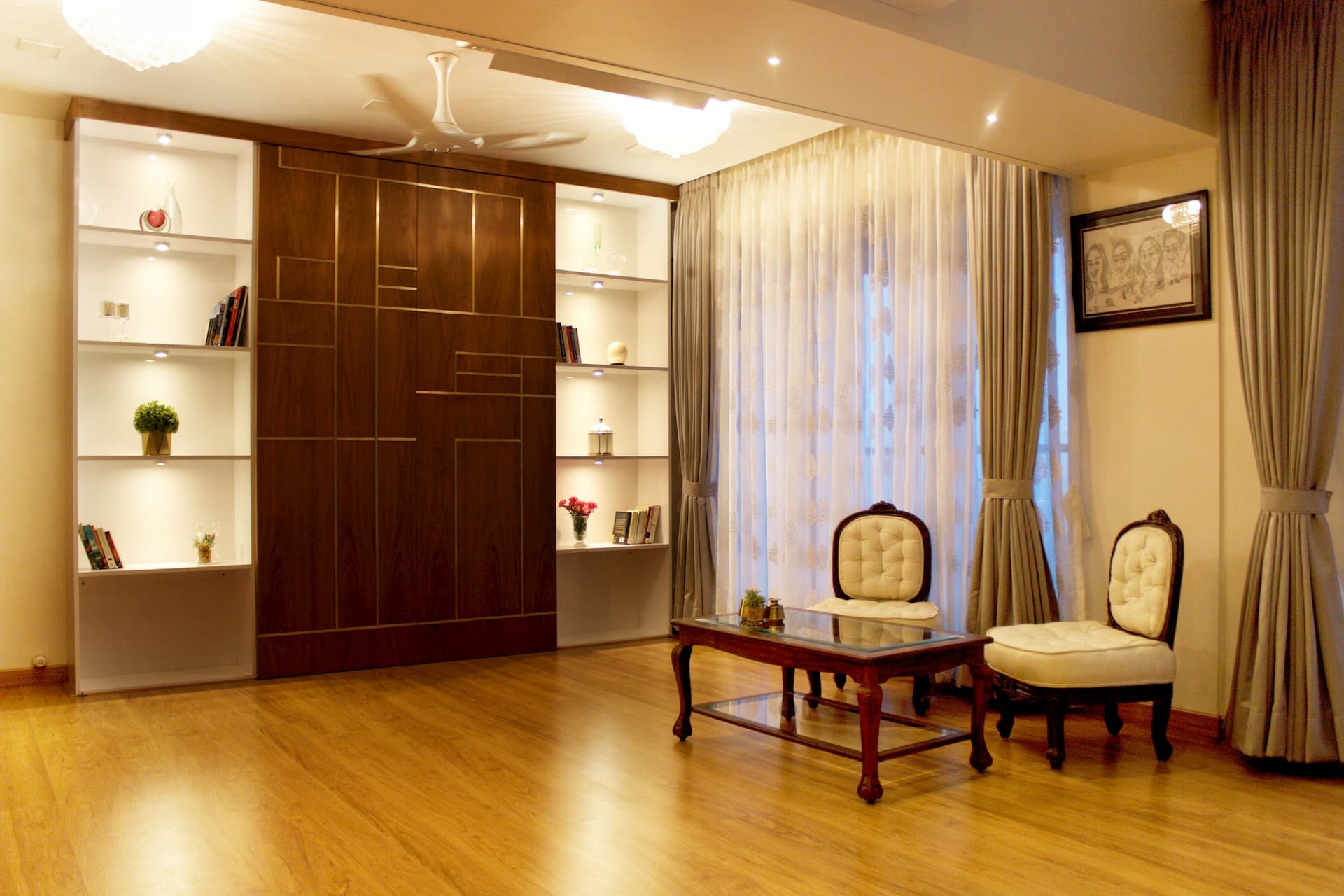 can expect from transitional spaces: curvaceous furniture profiles, minimilisitcneutral